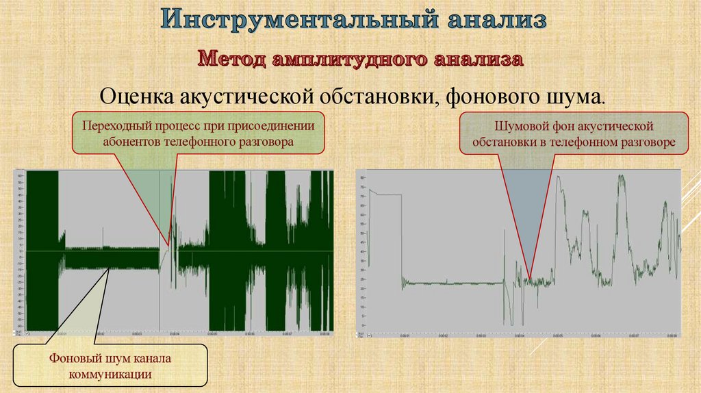 Наличие фонового шума и отличие его от шума акустической обстановки.47.