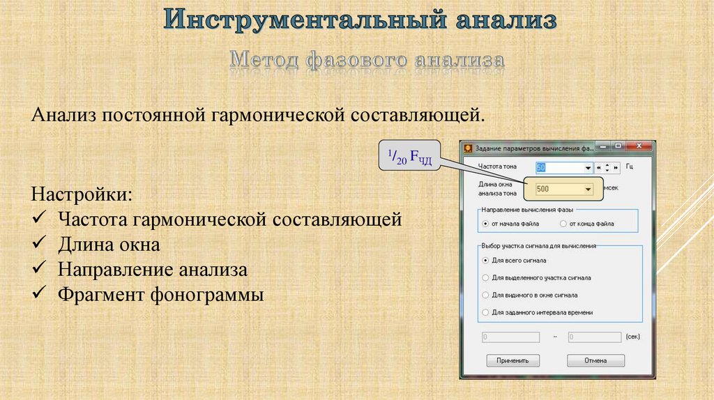 в процессе которого определить амплитудные, частотные и
