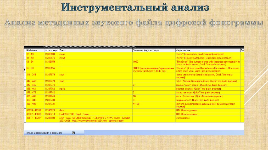 аналоговой фонограммы; извлечь метаданные файла,