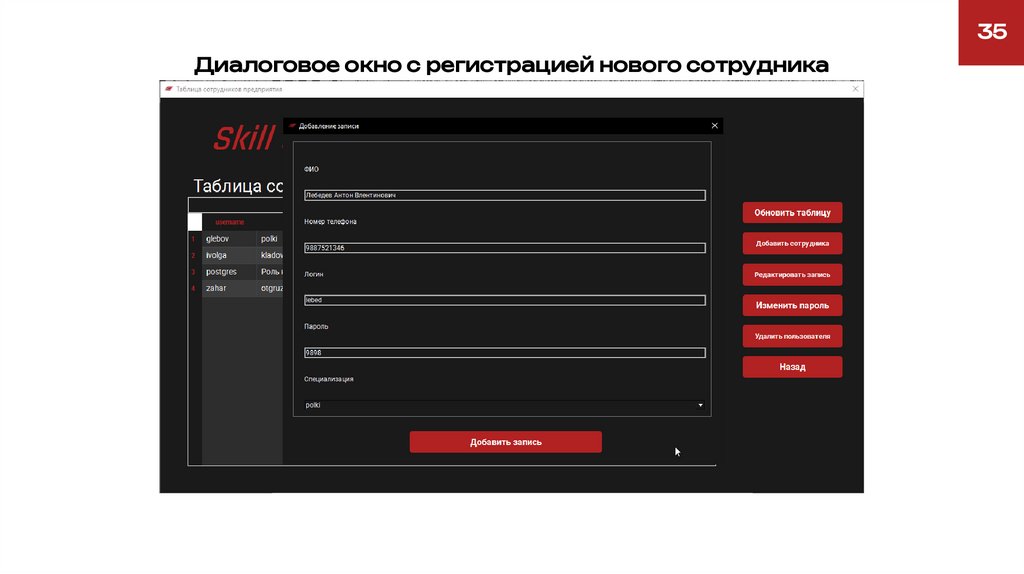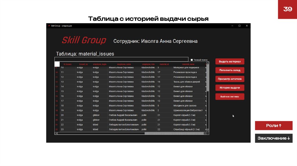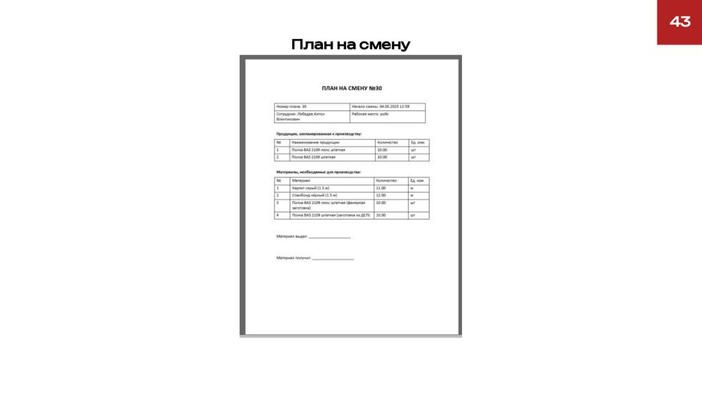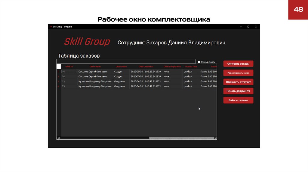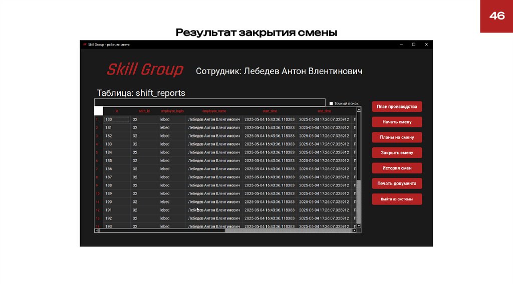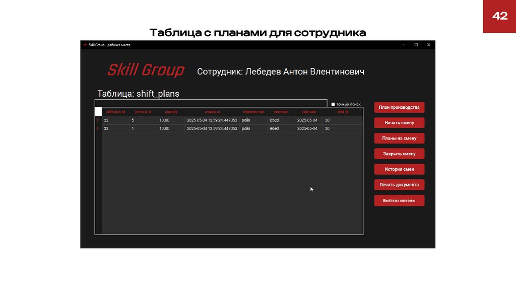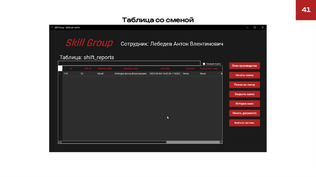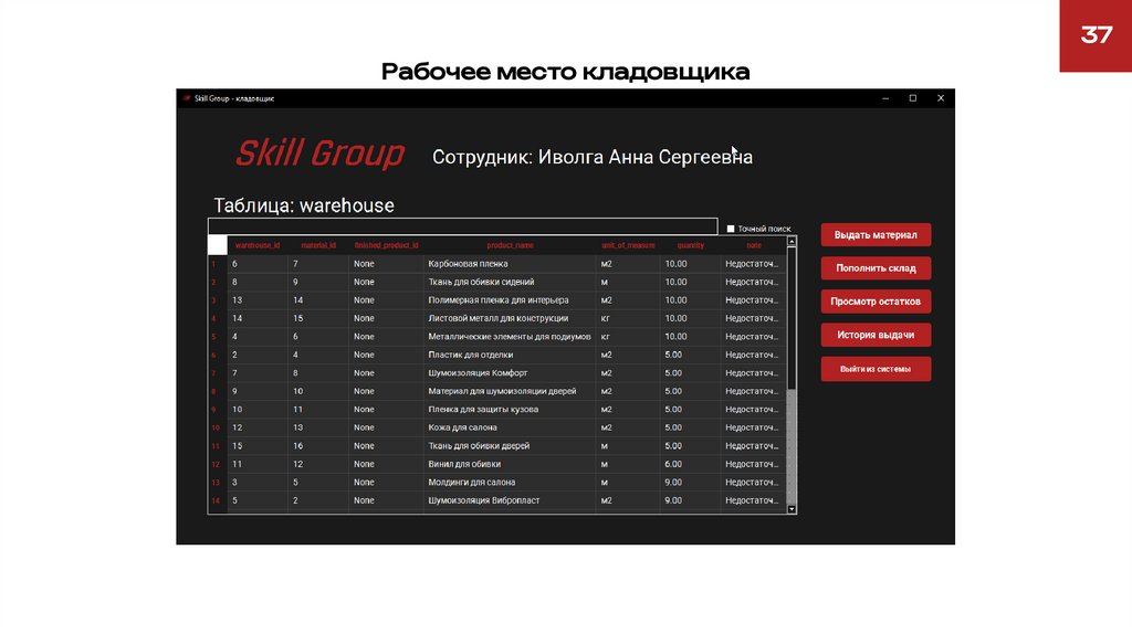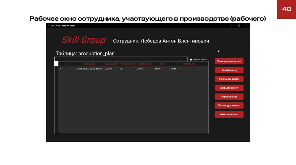 40Рабочее окно сотрудника, участвующего в производстве (рабочего)
