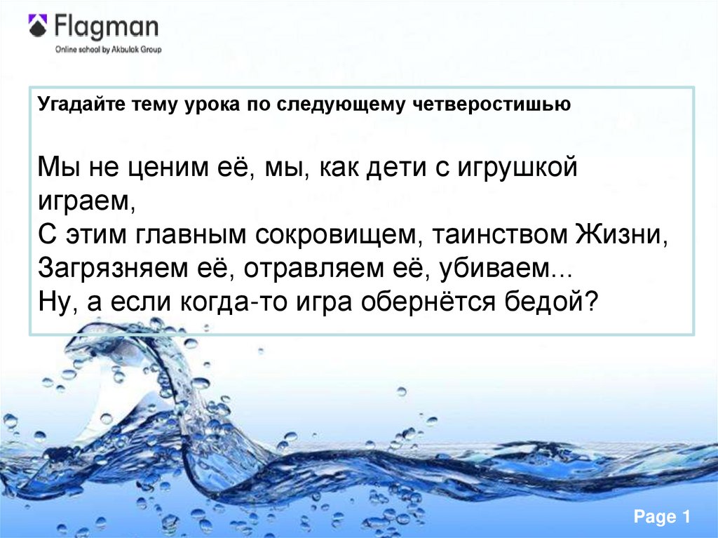 Угадайте тему урока по следующему четверостишьюМы не ценим её, мы, как дети с игрушкой