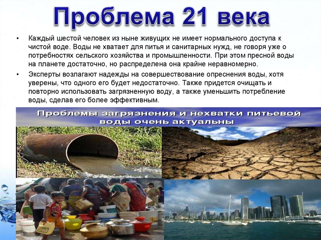 • Проблема сохранения пресной воды для будущих поколений - это одиниз важнейших вопросов на сегодняшний день. С 1992 года по инициативе
