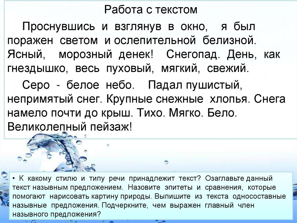 текст назывным предложением. Назовите эпитеты и сравнения, которые