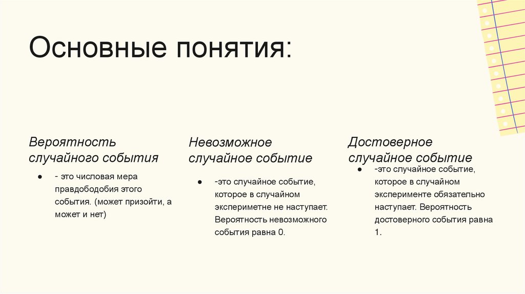 Основные понятия:Вероятность