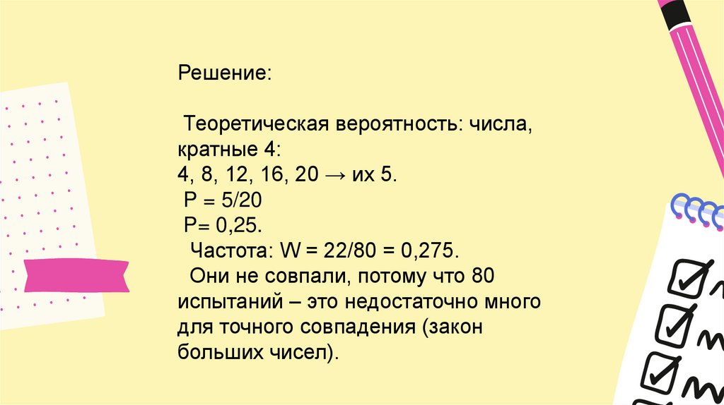 Решение:Теоретическая вероятность: числа,