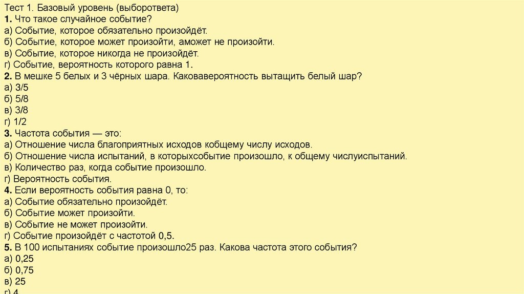 Тест 1. Базовый уровень (выборответа)1. Что такое случайное событие?