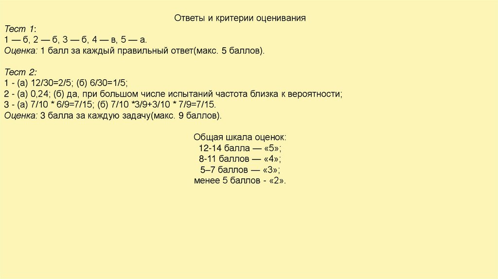 Ответы и критерии оцениванияТест 1: