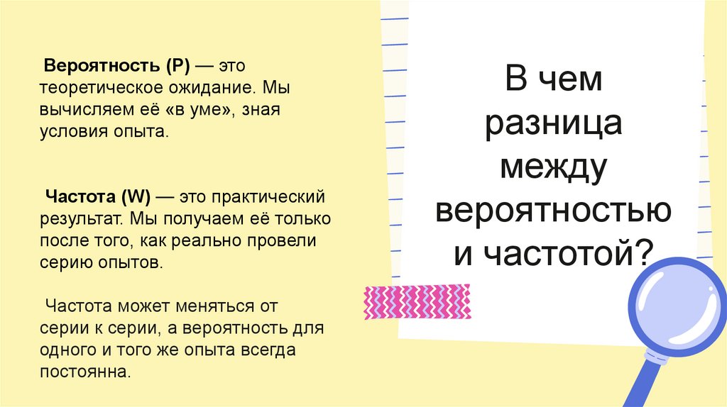 Вероятность (P) — этотеоретическое ожидание. Мы