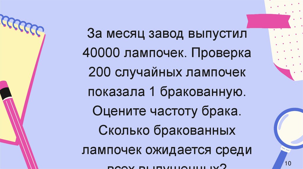 За месяц завод выпустил40000 лампочек. Проверка