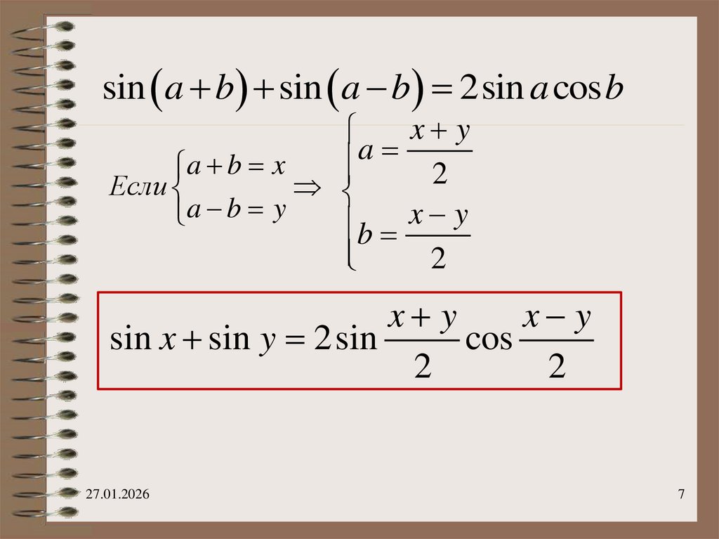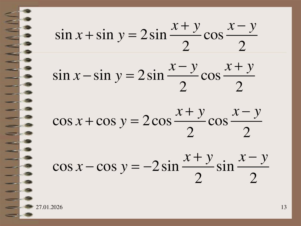 1. ПРЕОБРАЗОВАНИЕ СУММЫ ТРИГОНОМЕТРИЧЕСКИХ ФУНКЦИЙ В ПРОИЗВЕДЕНИЕ.