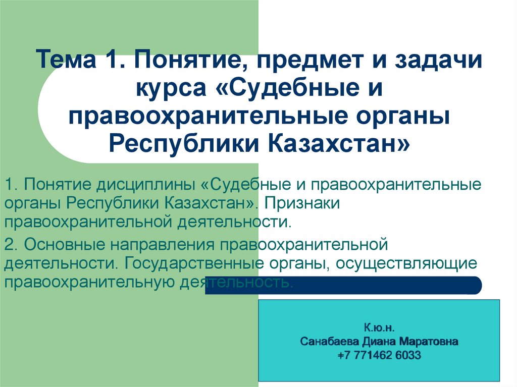 1. Тема 1. Понятие, предмет и задачи курса «Судебные и правоохранительные органы Республики Казахстан»
