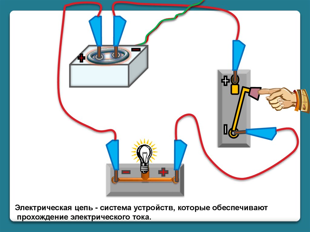 Электрическая цепь - система устройств, которые обеспечиваютпрохождение электрического тока.