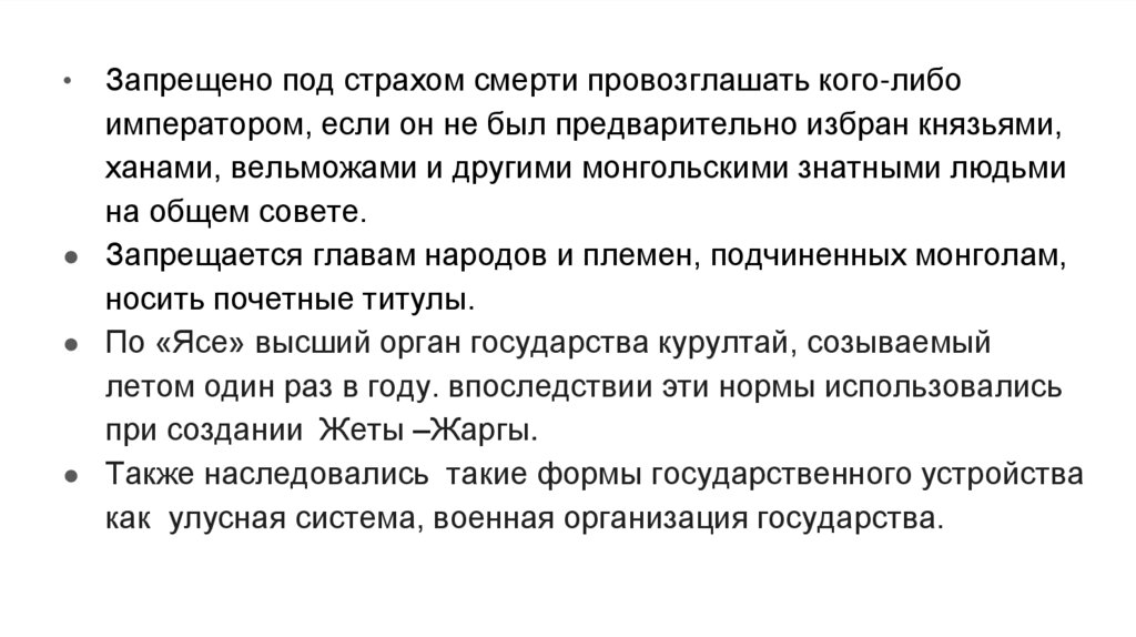 ● Чингисхан являлся примером «подчинения изданным им самимзаконам»