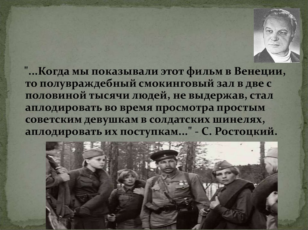 аплодировать их поступкам..." - С. Ростоцкий.