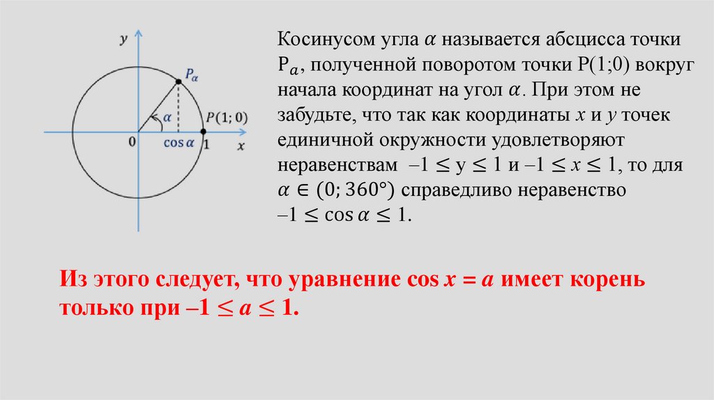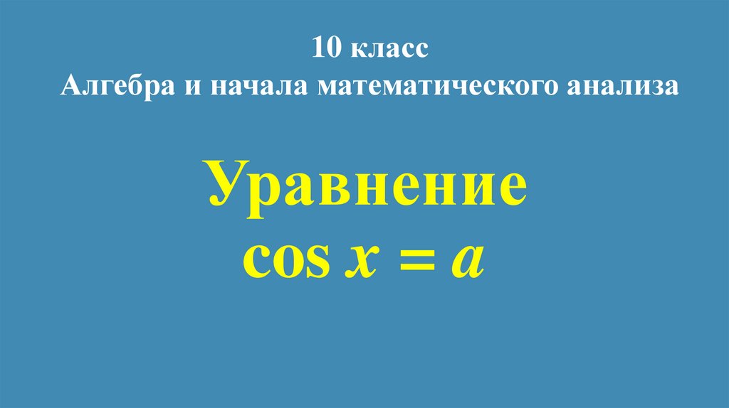 Презентация к уроку алгебры и начал математического анализа на тему _Уравнение cos x _ a_ (10 класс) (1)