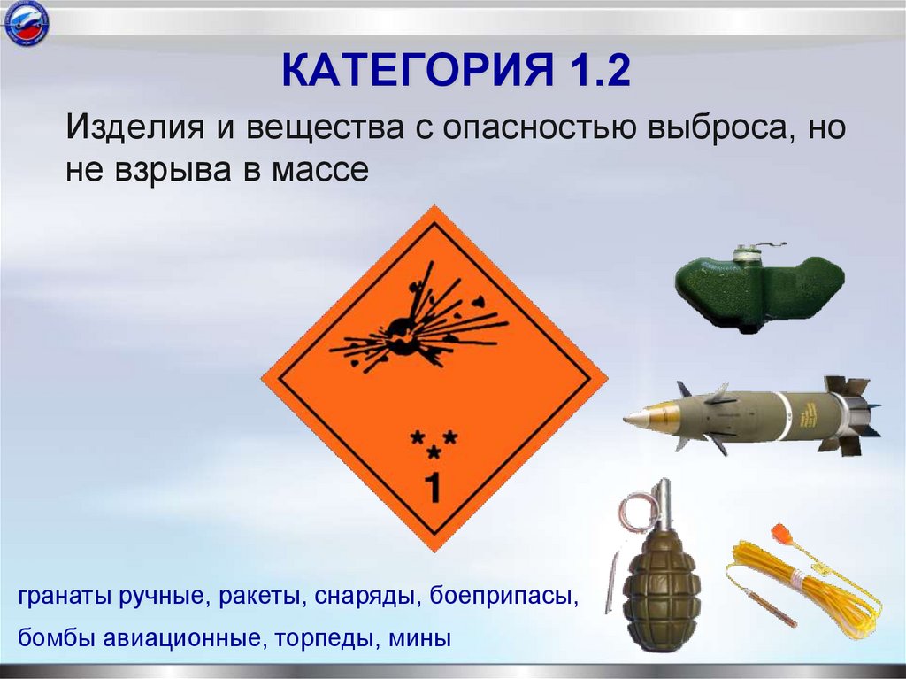 КАТЕГОРИЯ 1.2Изделия и вещества с опасностью выброса, но