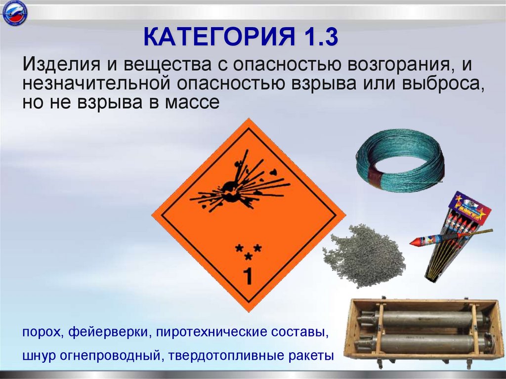 КАТЕГОРИЯ 1.3Изделия и вещества с опасностью возгорания, и