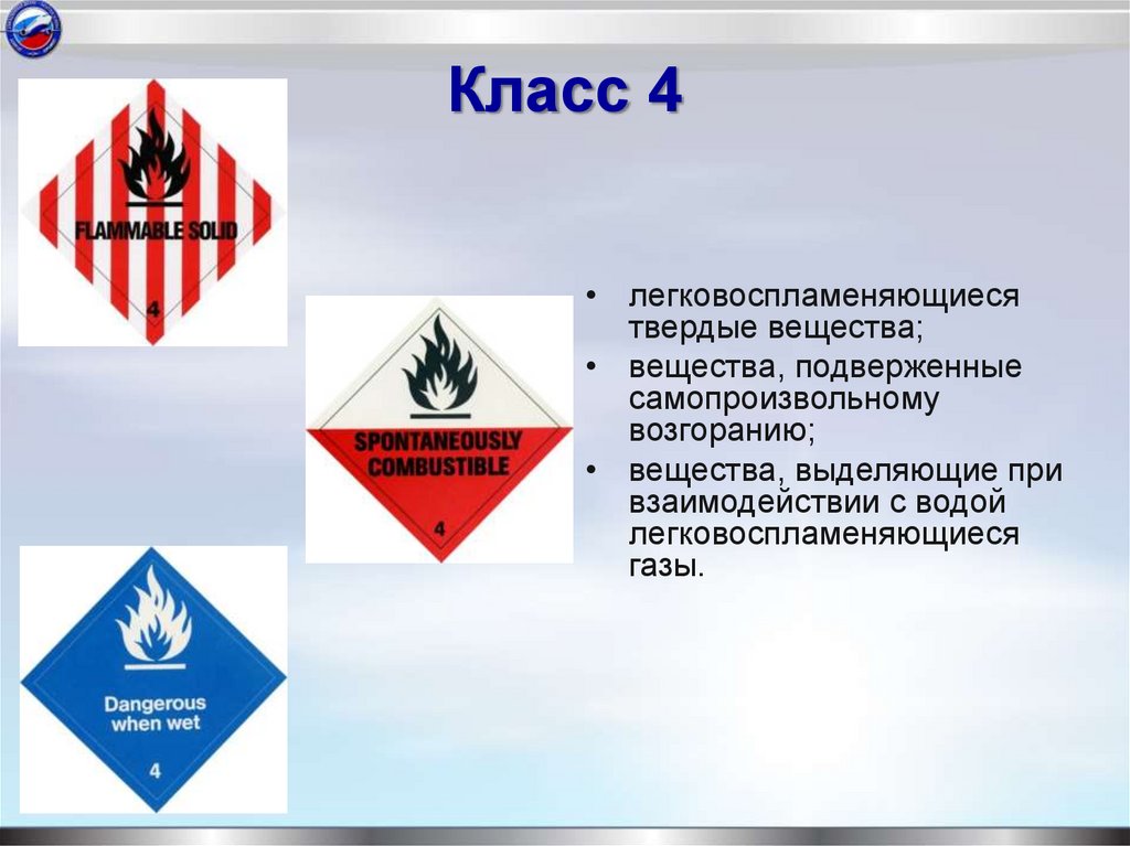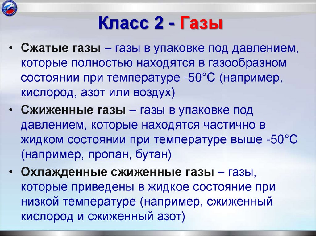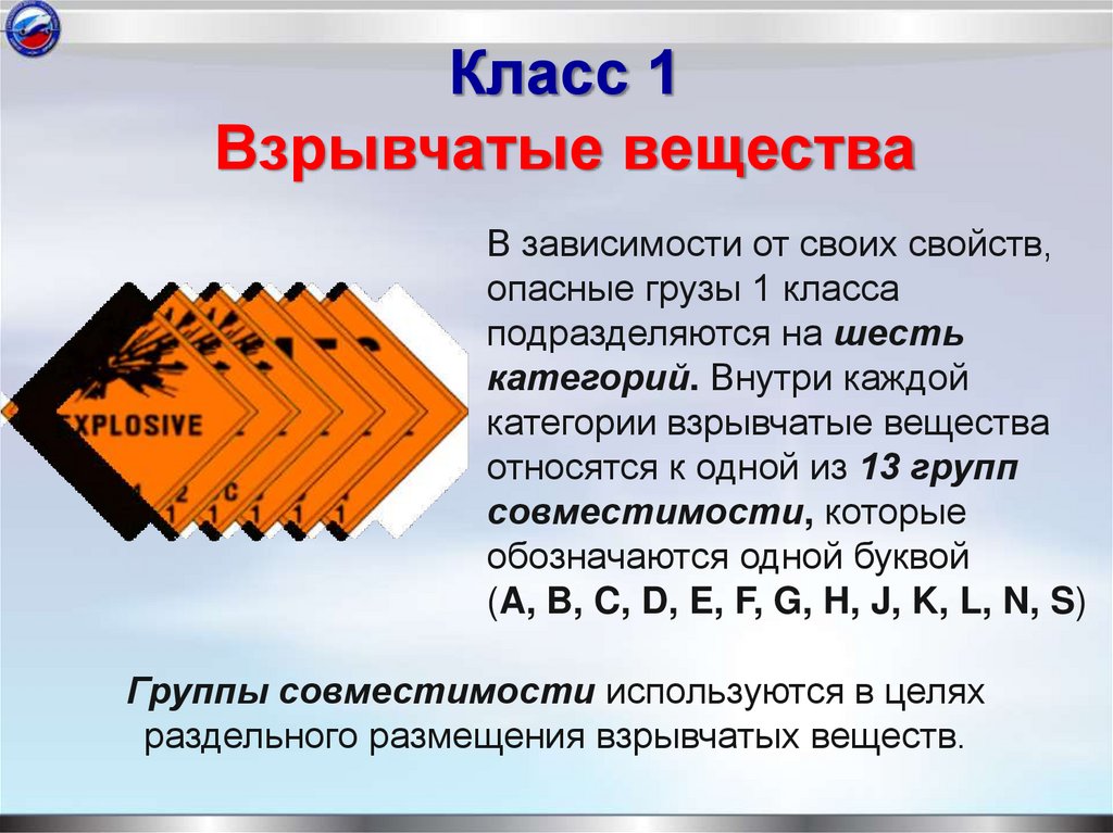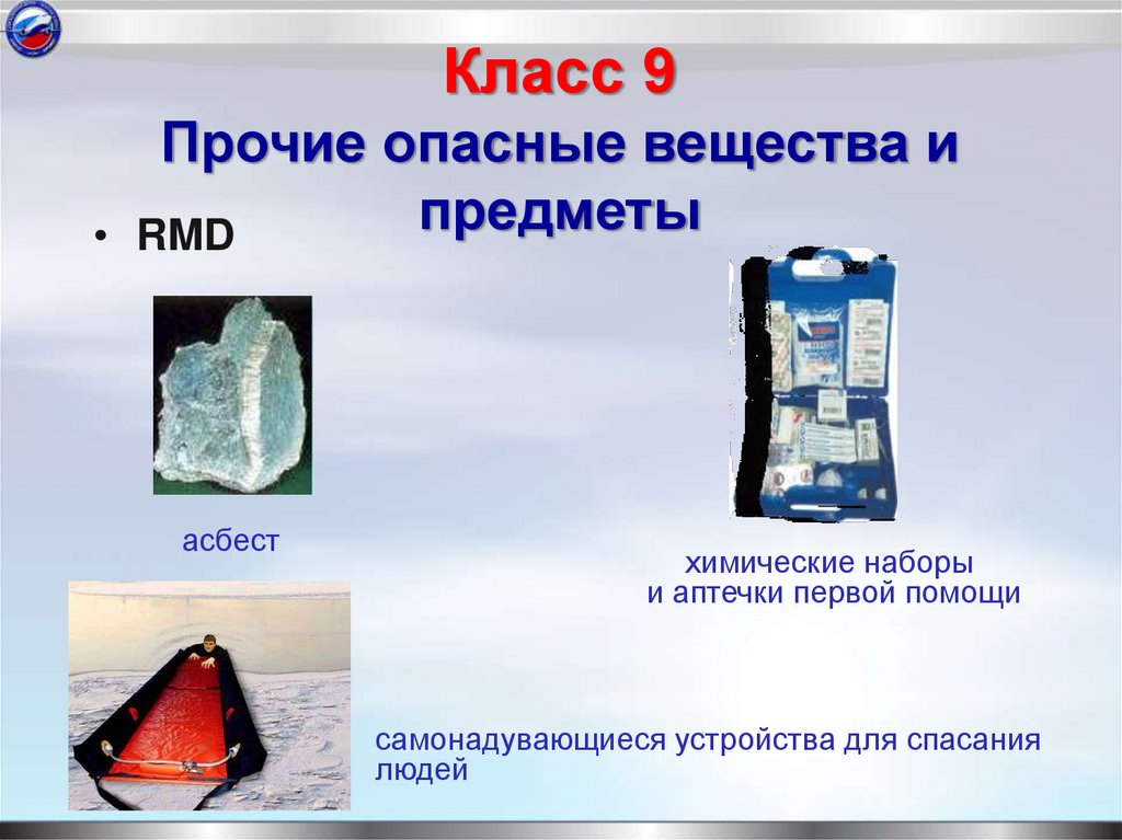В зависимости от физических и химических свойствопасные грузы включены в один из 9 классов