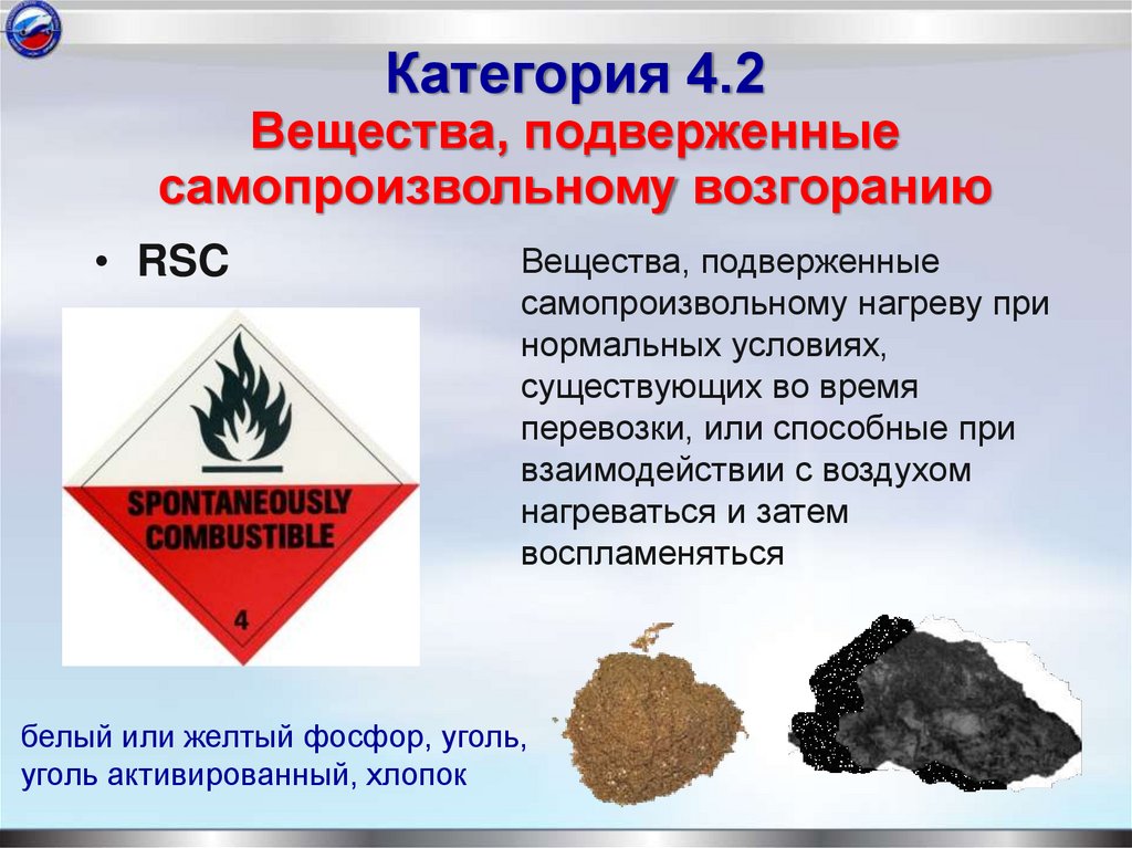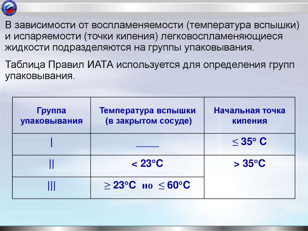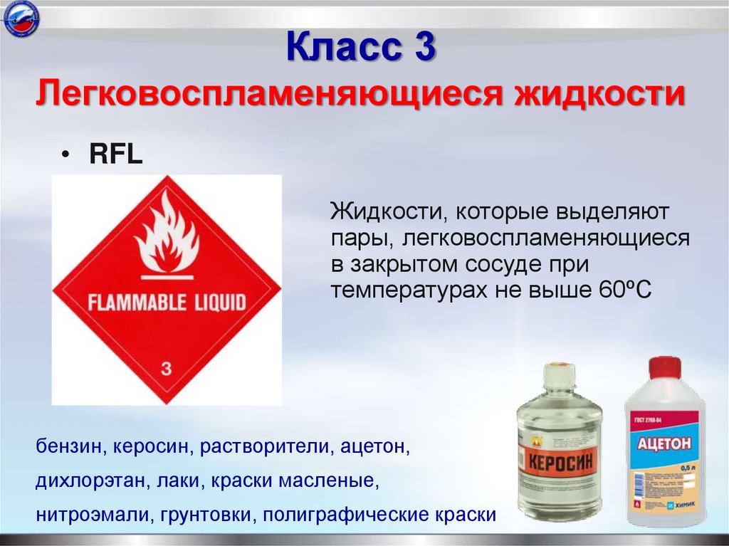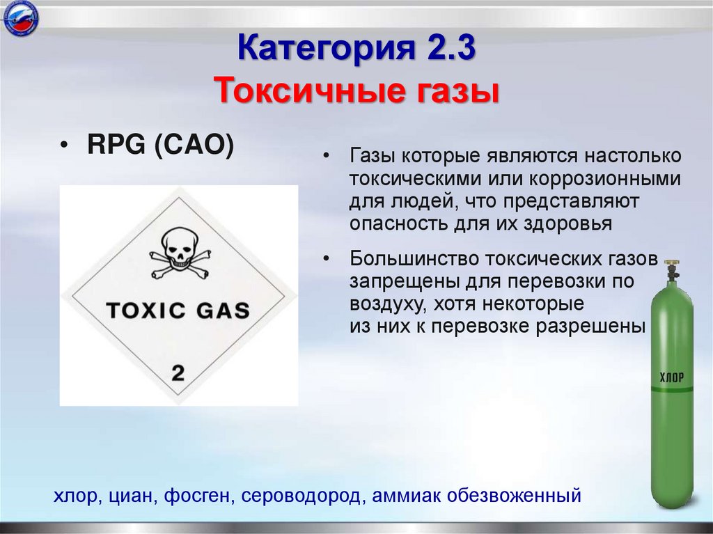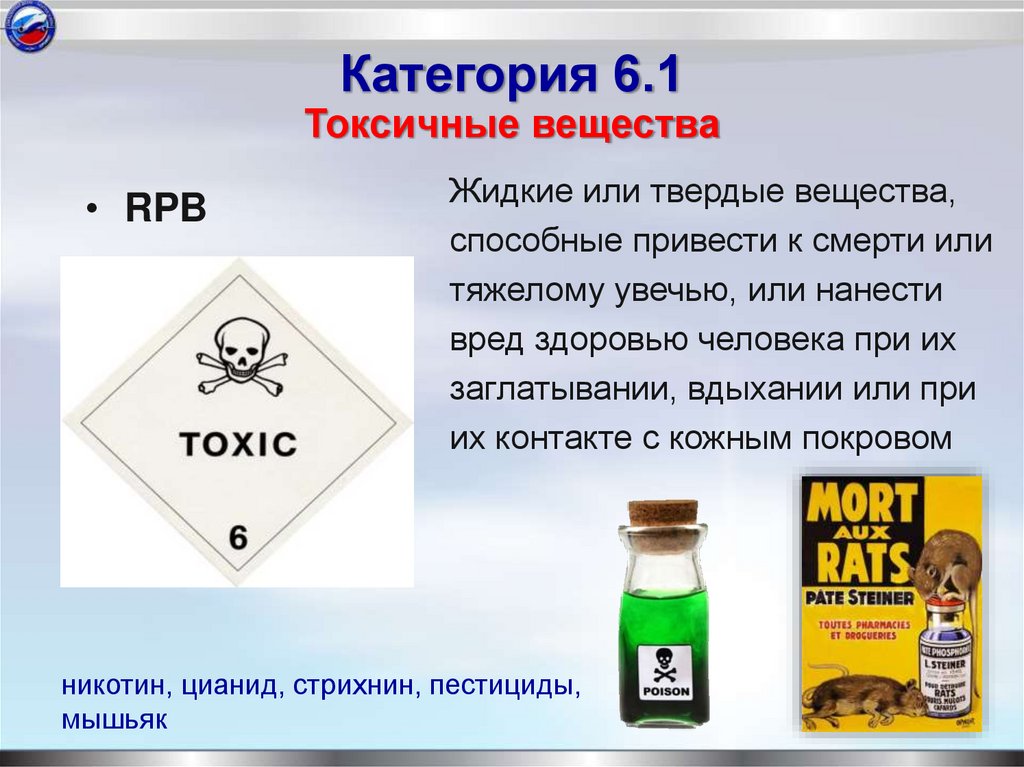 В зависимости от физических и химических свойствопасные грузы включены в один из 9 классов