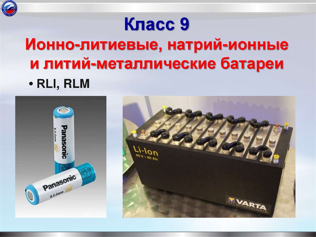 - Ионно-литиевые батареи (иногда сокращаемые до