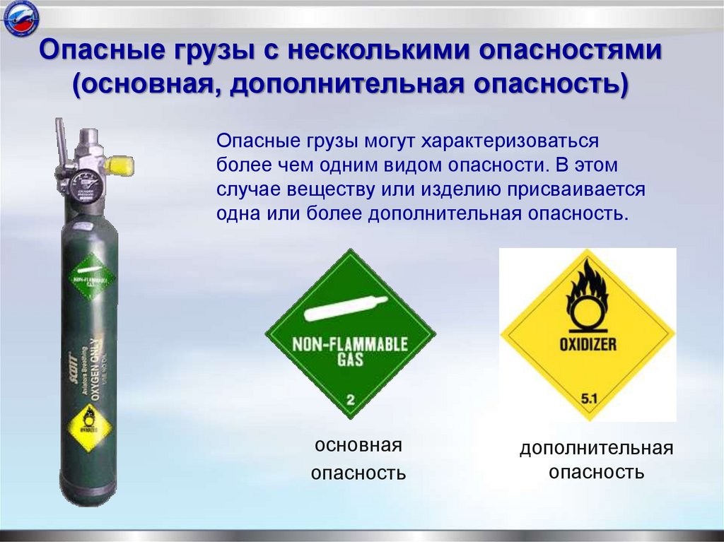 Опасные грузы с несколькими опасностями(основная, дополнительная опасность)