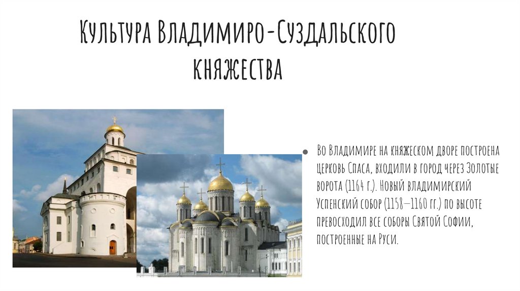 ● Владимир — политический, религиозный и культурный центр, столица княжества с