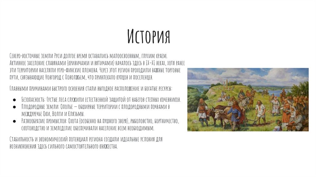 ИсторияСеверо-восточные земли Руси долгое время оставались малоосвоенным, глухим краем.