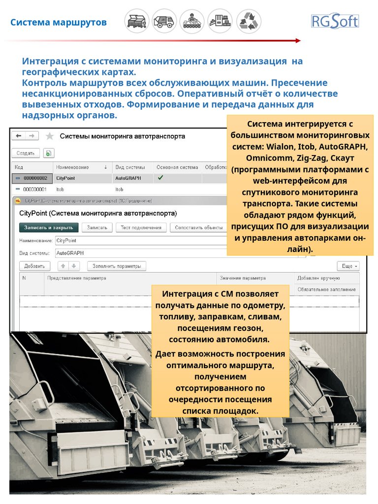 Интеграция с системами мониторинга. Контроль маршрутов всех обслуживаемых машин.