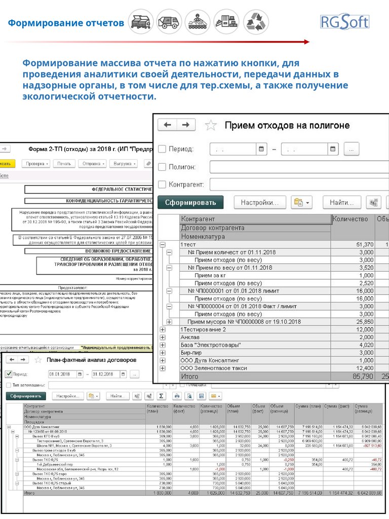 Формирование отчетов по всей деятельности, в том числе о количестве и видах вторичного сырья,