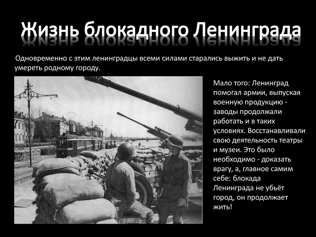 Одновременно с этим ленинградцы всеми силами старались выжить и не датьумереть родному городу.