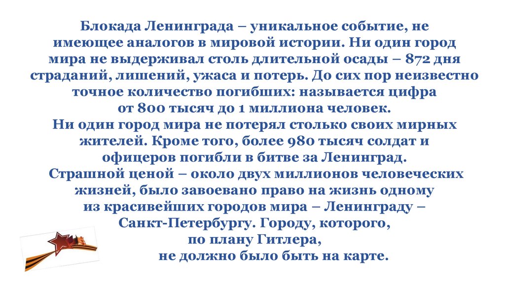Блокада Ленинграда – уникальное событие, неимеющее аналогов в мировой истории. Ни один город