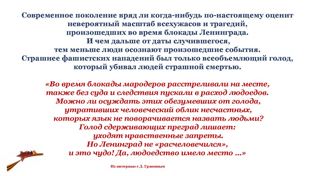 «Чтоб не забылась та война…»Гранин Д. и Адамович А. «Блокадная книга»