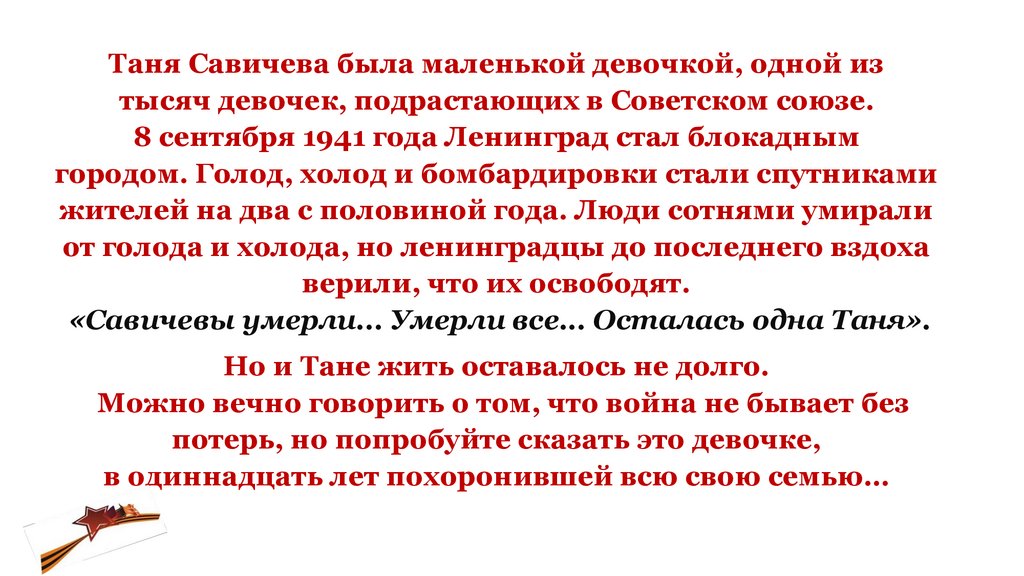 «Савичевы умерли... Умерли все... Осталась одна Таня».