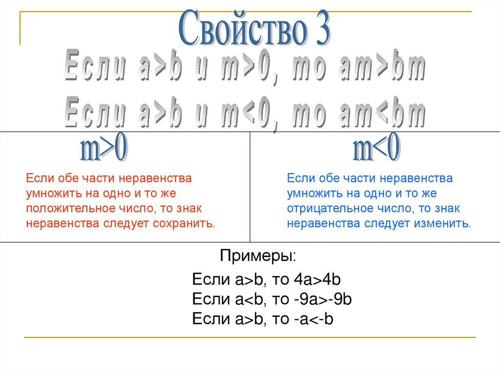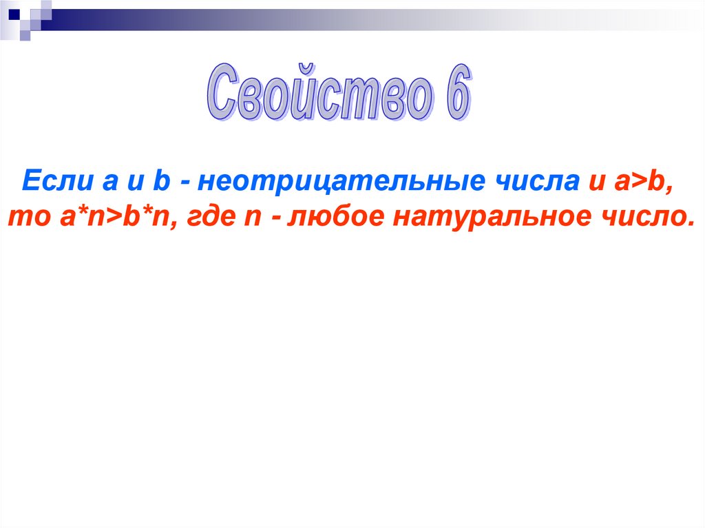 Если a и b - неотрицательные числа и a>b,то a*n>b*n, где n - любое натуральное число.