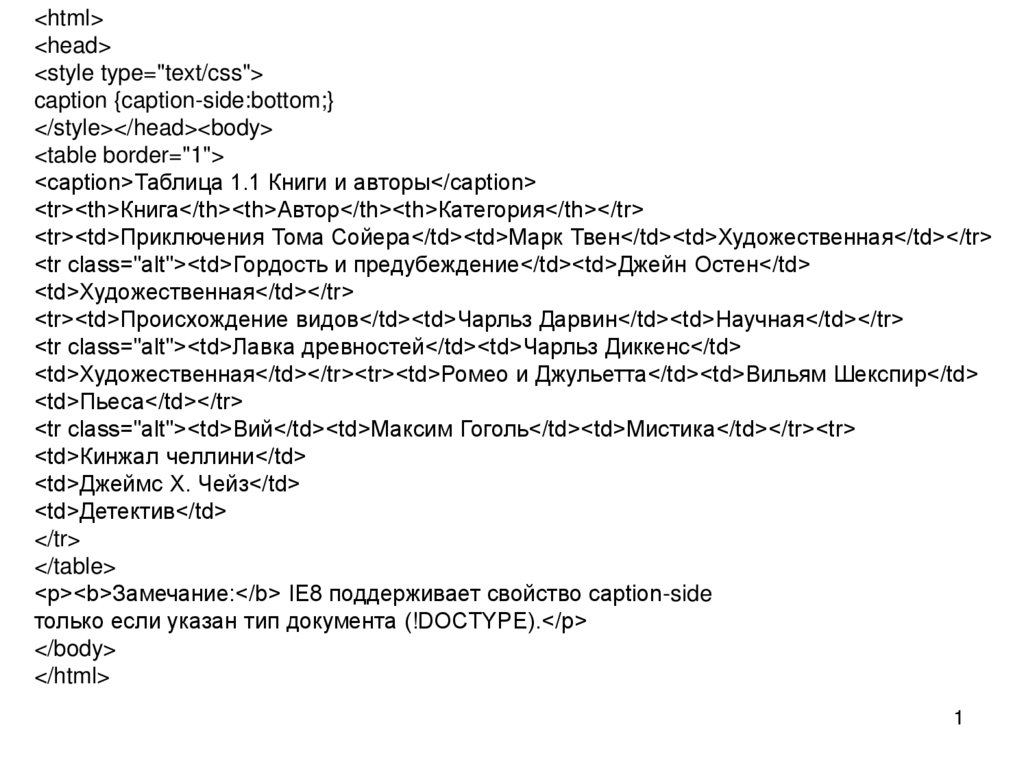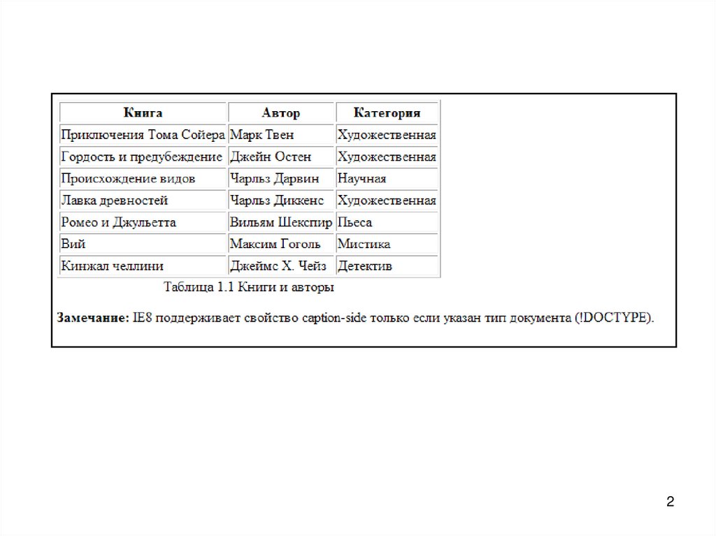 <caption>Таблица 1.1 Книги и авторы</caption>