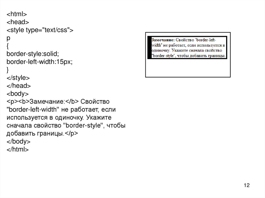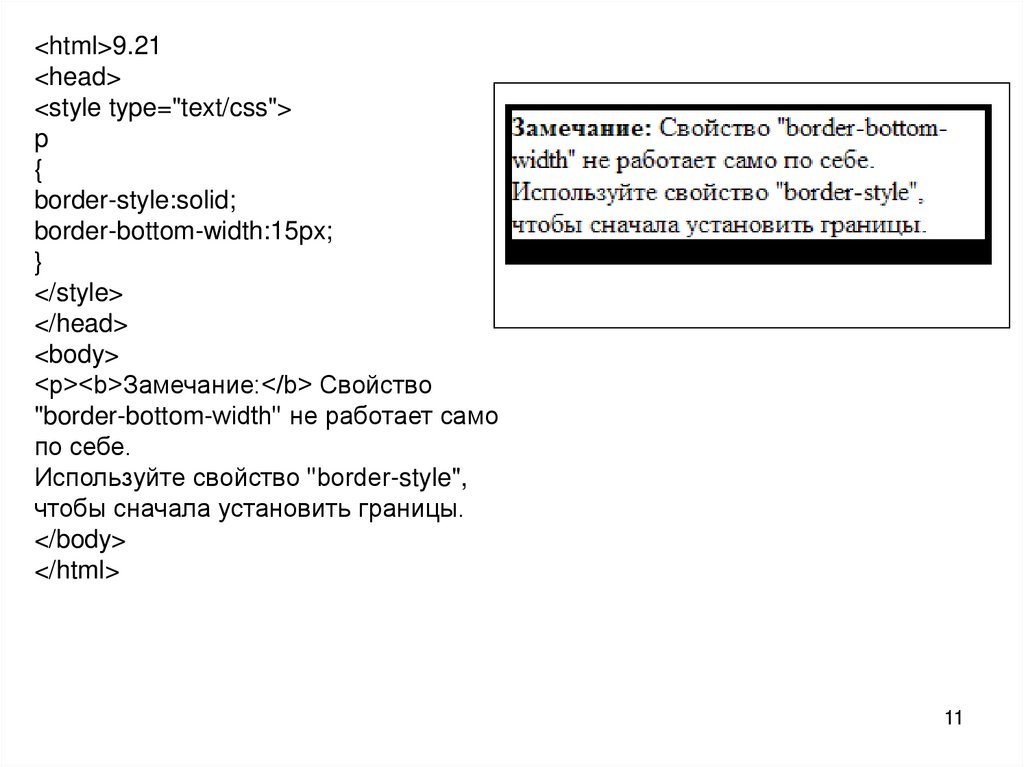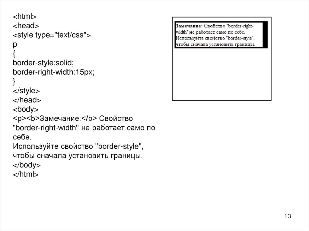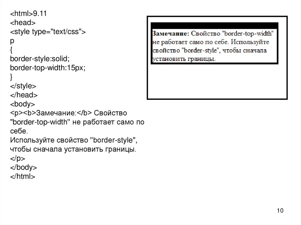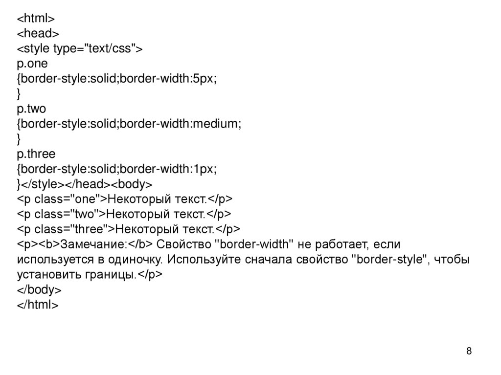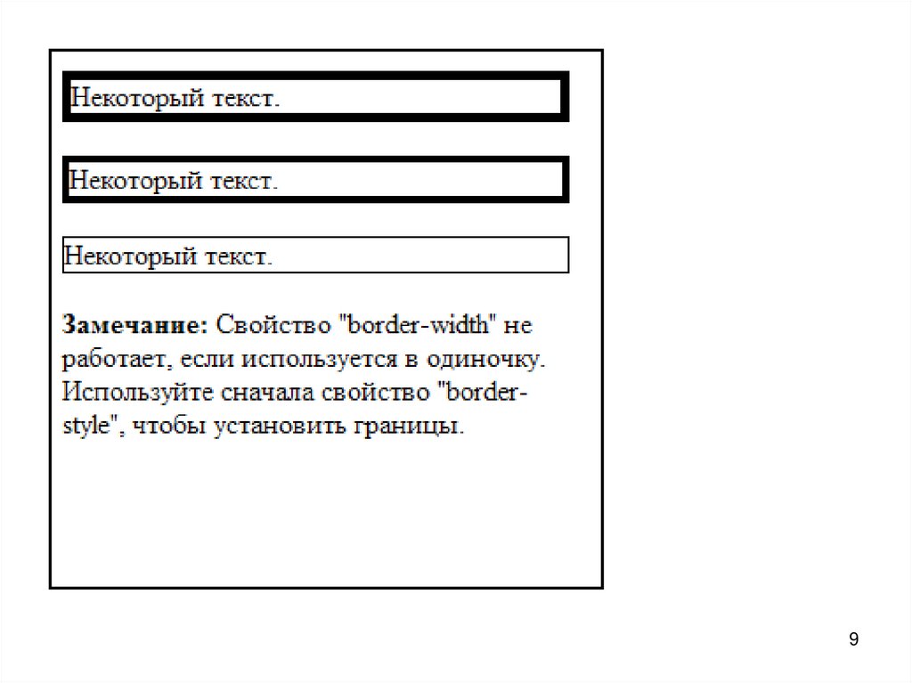 <p><b>Замечание:</b> Свойство "border-width" не работает, если