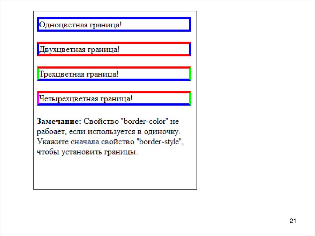 <p><b>Замечание:</b> Свойство "border-color" не рабоает, если используется