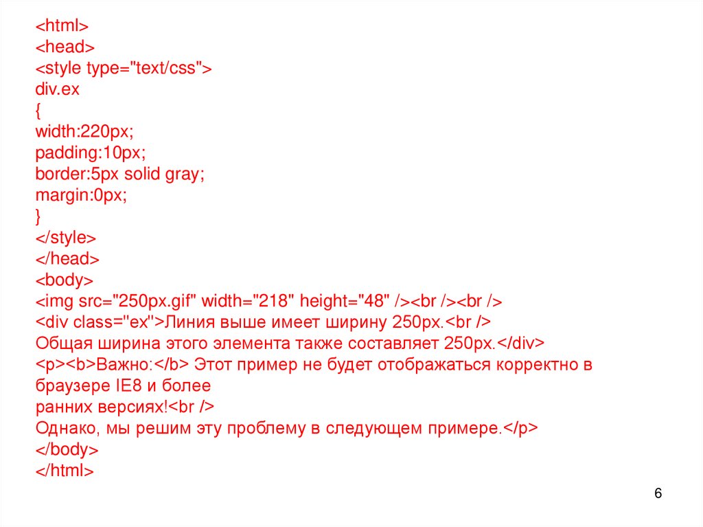 <p><b>Важно:</b> Этот пример не будет отображаться корректно в