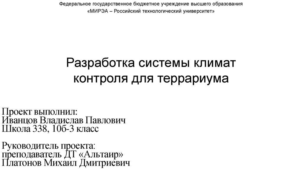 Проект МИРЭА - Разработка системы климат контроля для террариума
