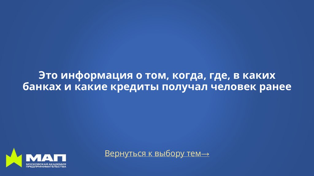 Это информация о том, когда, где, в какихбанках и какие кредиты получал человек ранее