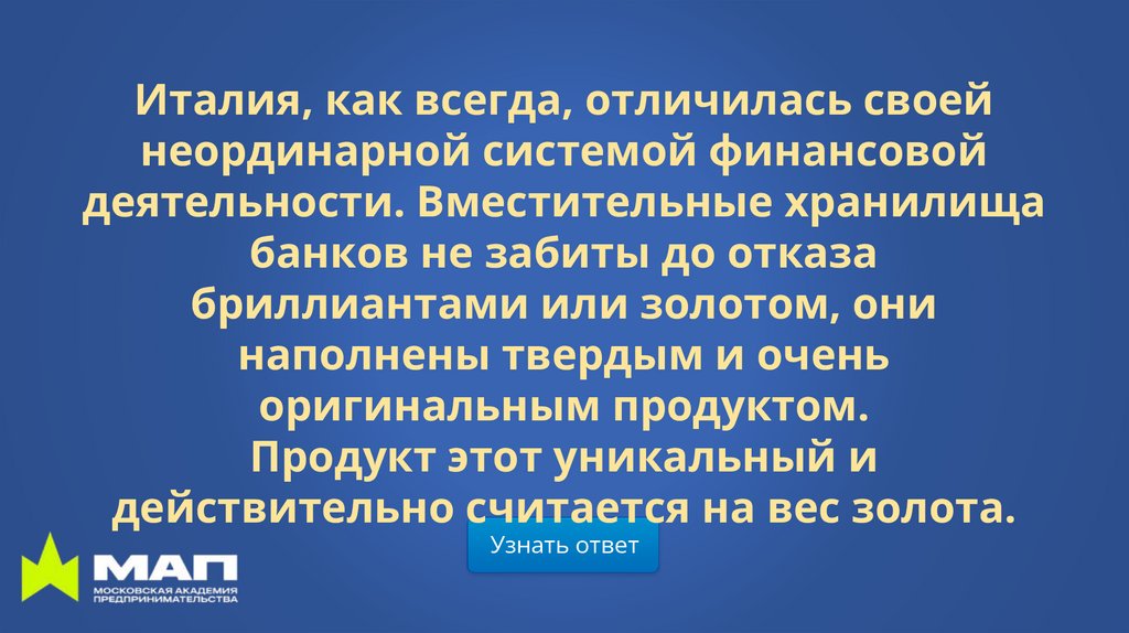 Италия, как всегда, отличилась своейнеординарной системой финансовой