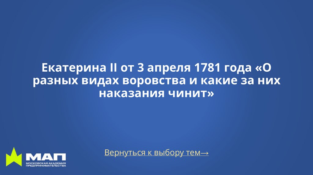 Екатерина II от 3 апреля 1781 года «Оразных видах воровства и какие за них