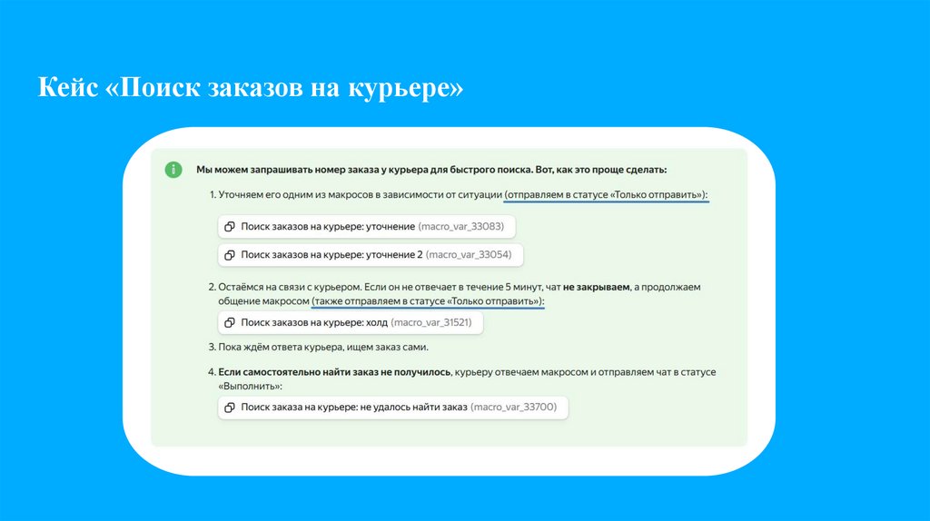 Макрос — это скелет ответа, который помогает саппорту решитьобращение быстрее и не потерять суть. Поэтому необходимо
