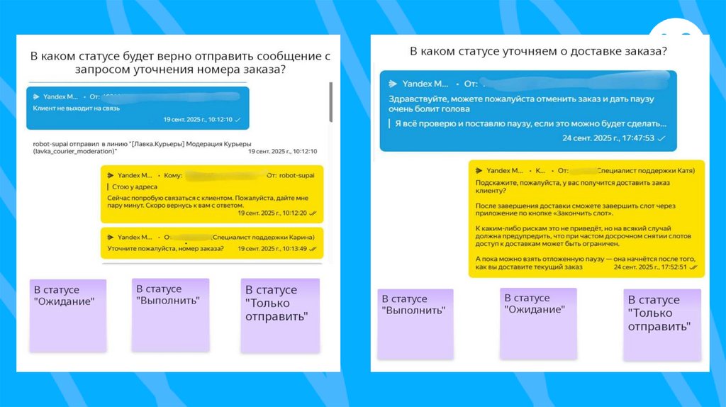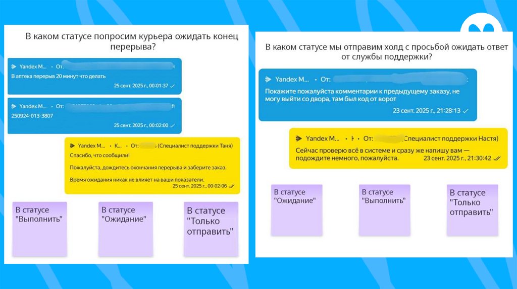 1Добавляем в наш ответ детали из обращения курьера, чтобы он