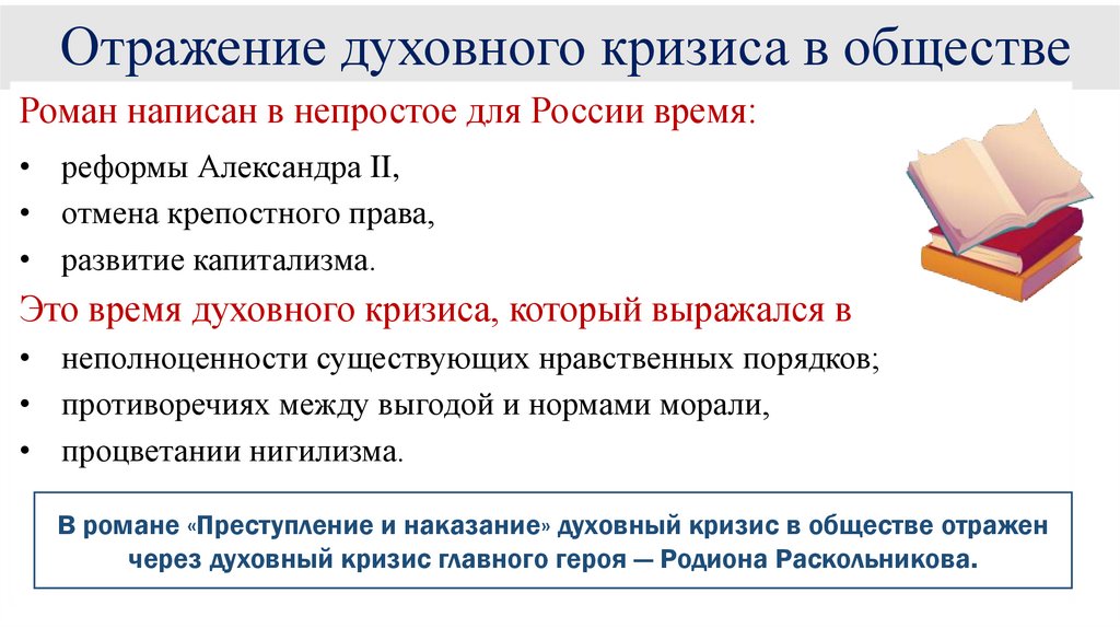 В романе «Преступление и наказание» духовный кризис в обществе отражен