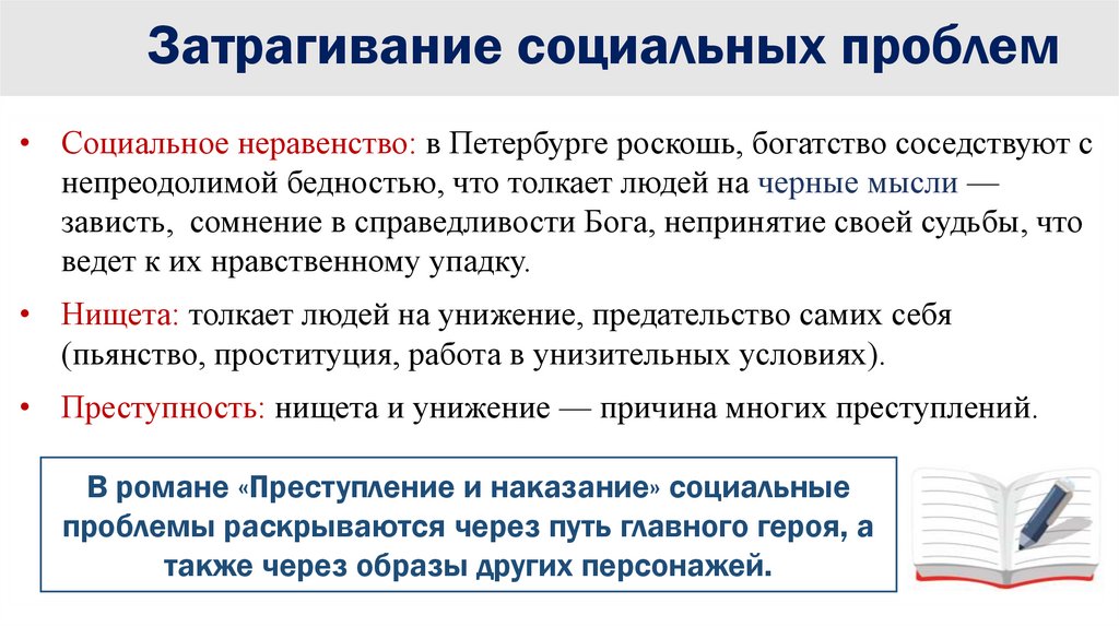 Затрагивание социальных проблем• Социальное неравенство: в Петербурге роскошь, богатство соседствуют с
