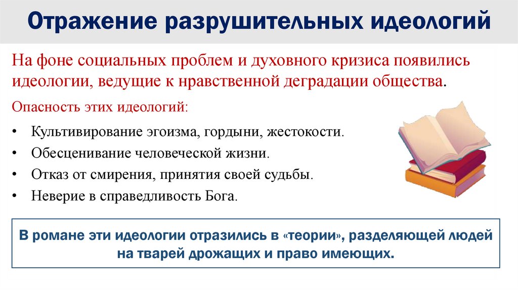 Отражение разрушительных идеологийНа фоне социальных проблем и духовного кризиса появились