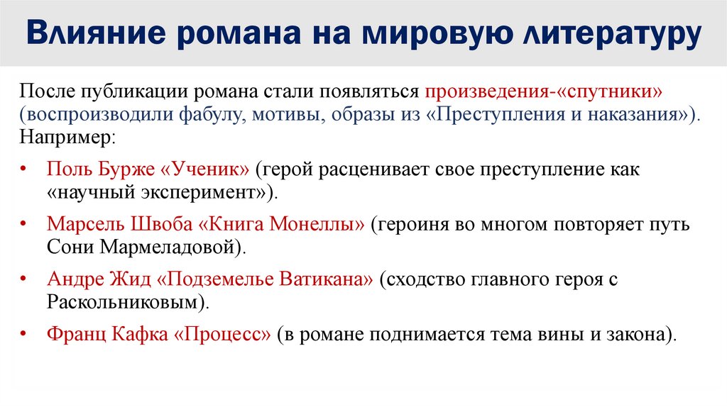 (воспроизводили фабулу, мотивы, образы из «Преступления и наказания»).