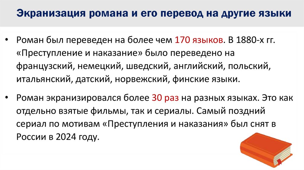 Экранизация романа и его перевод на другие языки• Роман был переведен на более чем 170 языков. В 1880-х гг.