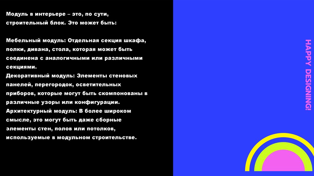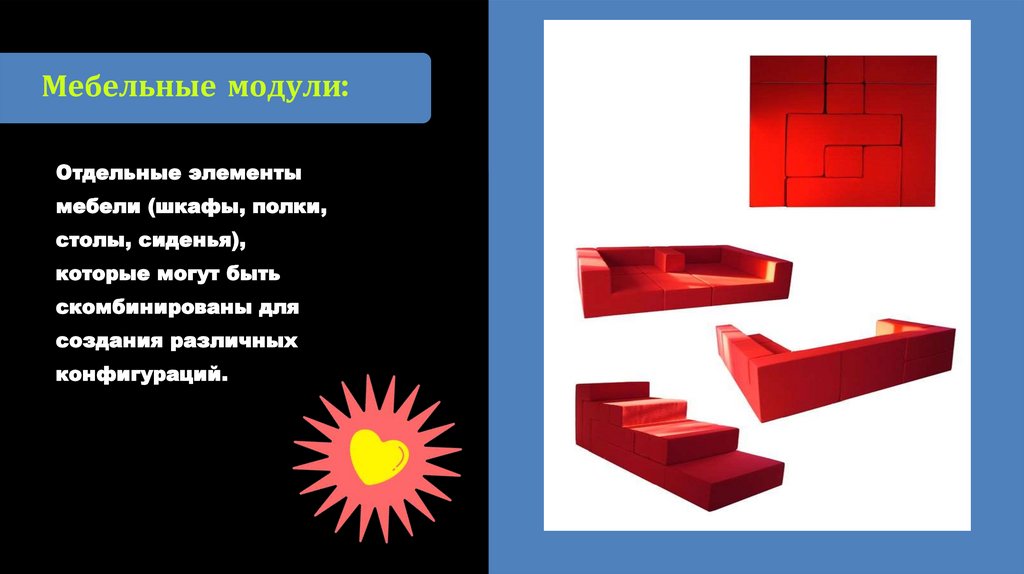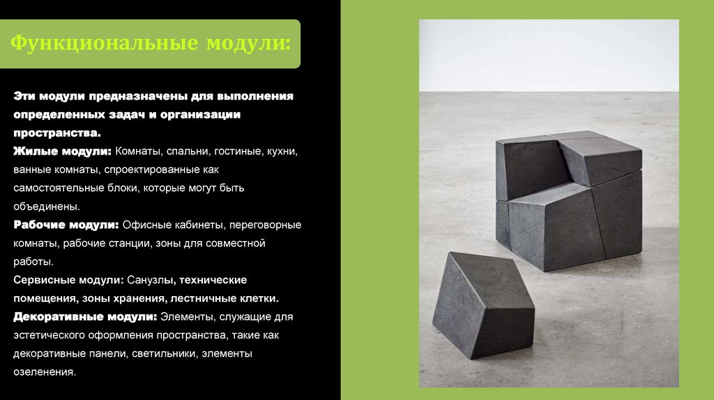 Модуль в интерьере – это, по сути,строительный блок. Это может быть:
